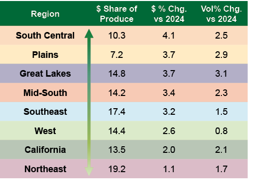 • Year-to-date performance: Produce dollar sales are up 2.8%, accompanied by a 2.0% rise in volume compared to the same period last year