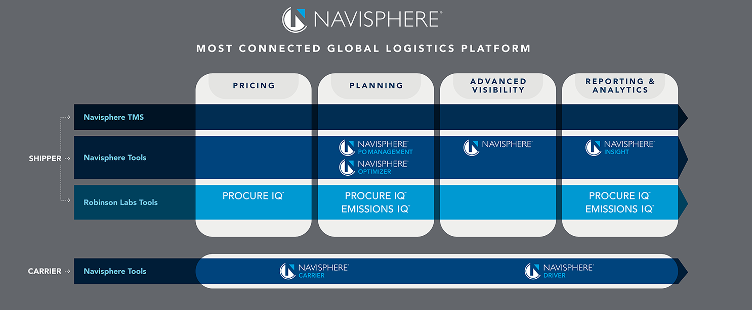 Zbuduj najlepszy w swojej klasie łańcuch dostaw i rozwiąż problemy logistyczne — od prostych po złożone — dzięki naszym rozwiązaniom technologicznym dla spedytorów. Zarządzaj każdym aspektem cyklu życia przesyłki dzięki Navisphere®, najbardziej połączonej, elastycznej i najłatwiej dostępnej platformie. Ponadto bezproblemowo korzystaj z integracji z partnerami, z których już korzystasz.